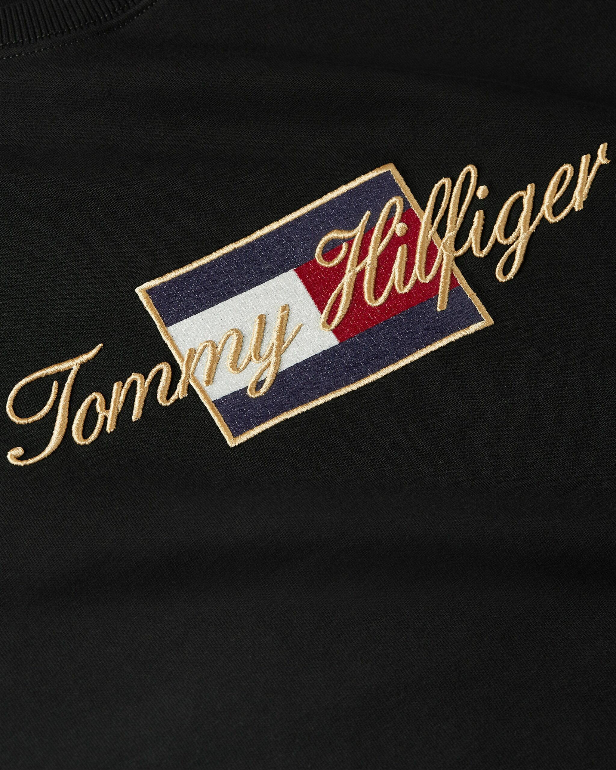 Caractéristiques Ce T-shirt classique à col ras-du-cou possède une allure élégante avec son jersey de pur coton épais orné d’un logo brodé métallisé. Points forts • Jersey de pur coton • Col ras-du-cou • Logo cursive brodé sur la poitrine • Bande emblématique à l’intérieur du col • Branding Tommy Hilfiger Coupe et taille • Standard • Le modèle mesure 1m86 et porte une taille M Composition et entretien • 100 % coton