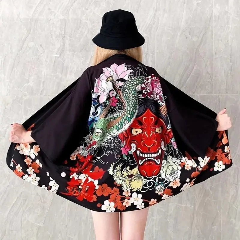 Veste kimono femme avec motif de démon japonais