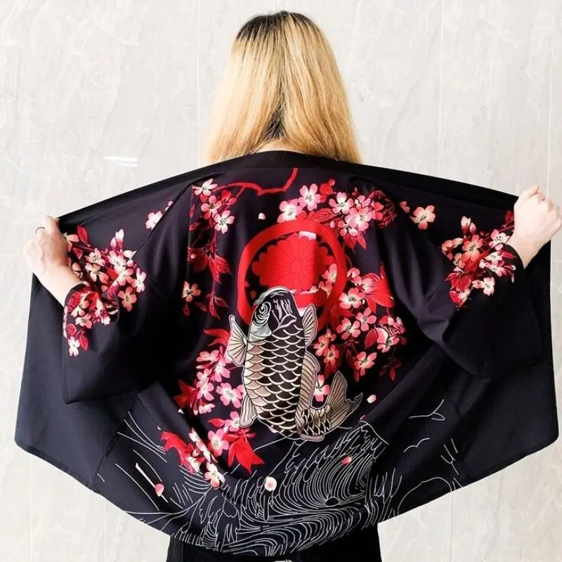 Achetez notre veste de kimono pour femme avec motif de carpe Koi et Kiku dès maintenant !