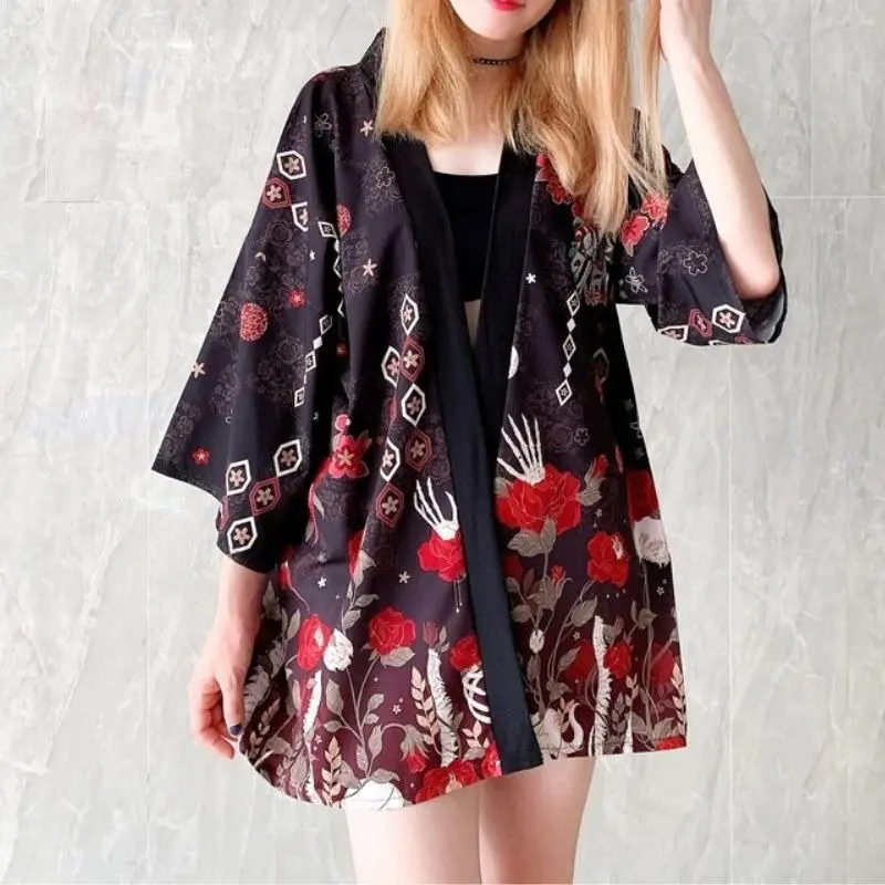 Veste kimono femme avec motif de masque Kitsune