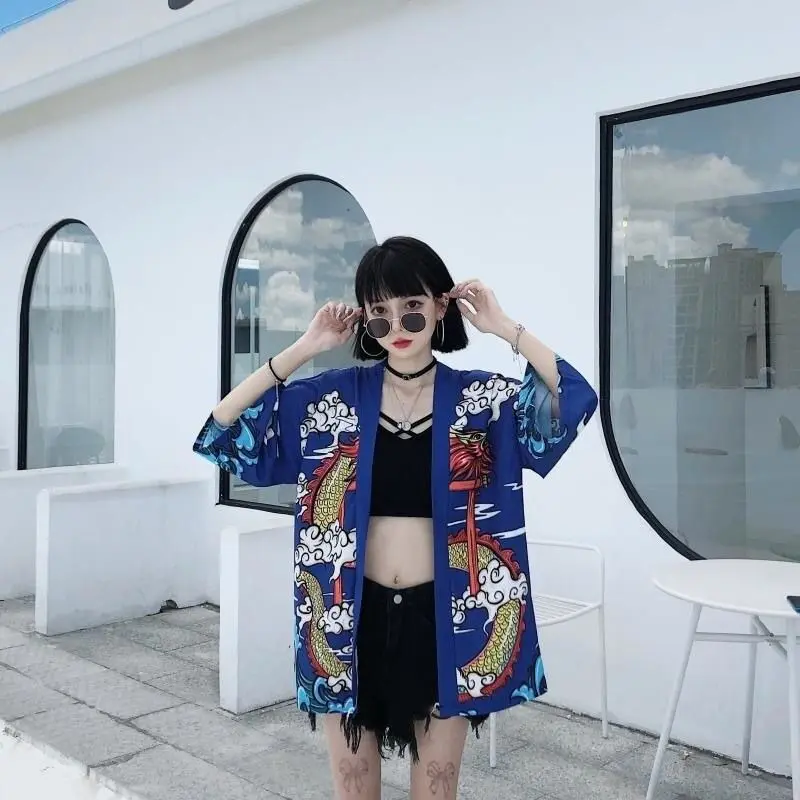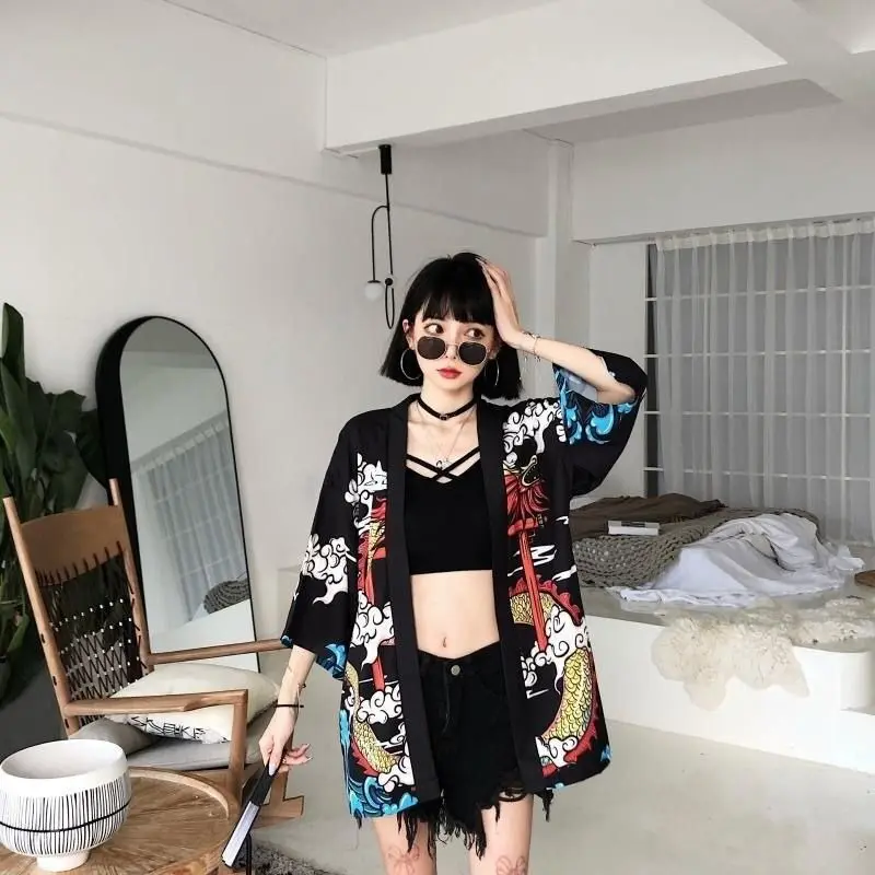 Veste kimono femme avec un motif de dragon japonais