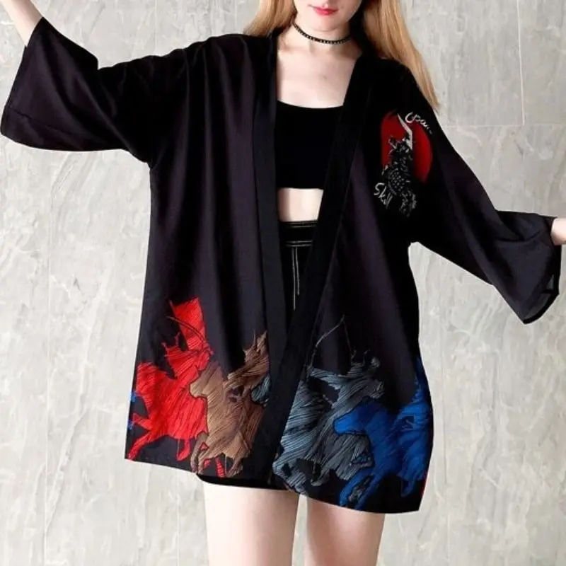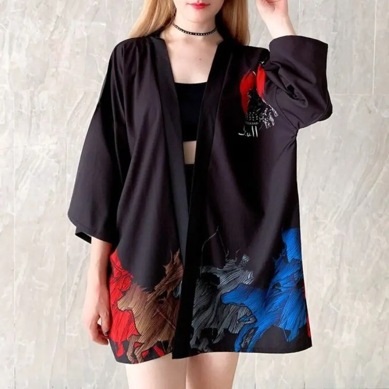 Cette veste kimono est le moyen idéal de montrer votre amour de la culture et du style japonais. Elle est fabriquée avec un tissu de haute qualité agréable à porter, et elle est légère pour que vous puissiez facilement la superposer à d'autres vêtements. De plus, le motif samouraï ne manquera pas de faire tourner les têtes partout où vous irez.