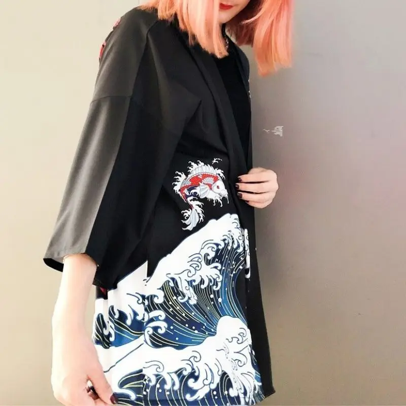 La veste kimono est une veste traditionnelle japonaise portée par les femmes. Elle est généralement fabriquée à partir de polyester et est ornée de nombreux motifs. La veste kimono est généralement portée par-dessus un kimono et est maintenue fermée par une ceinture.