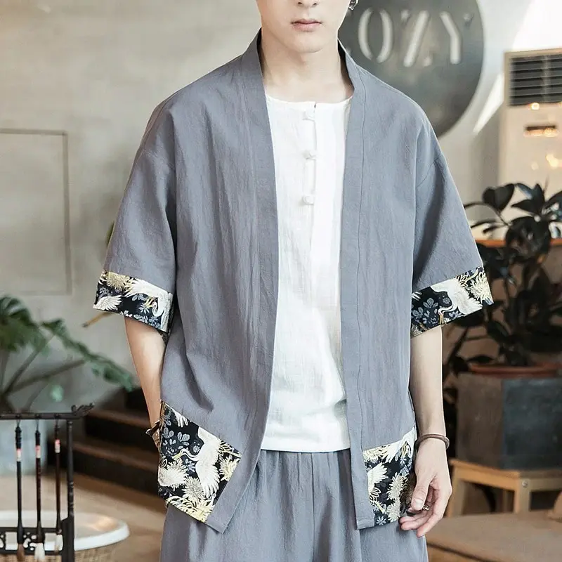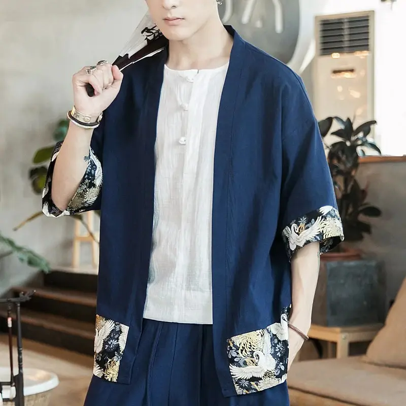 Veste Kimono homme avec des motifs Botan et Tsuru