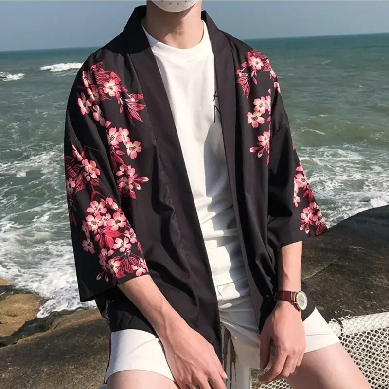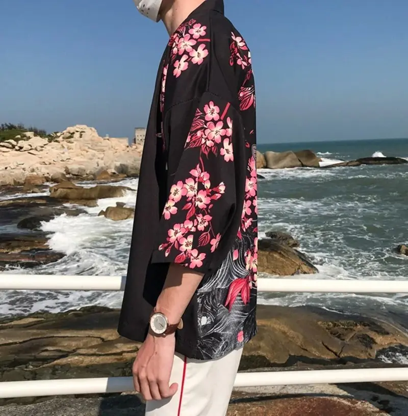 Veste Kimono pour homme avec motifs de fleur de cerisier et Koï