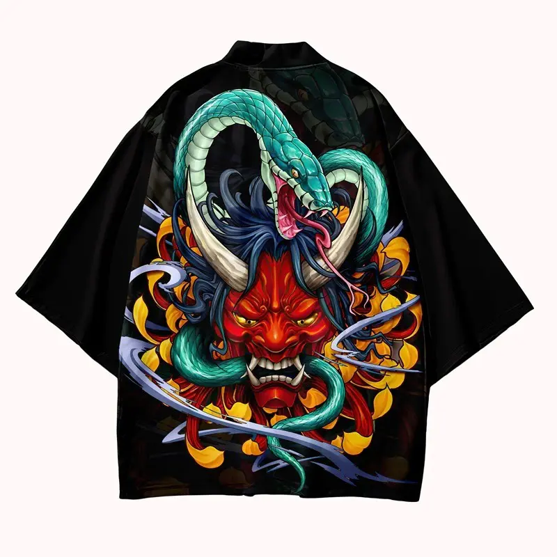 🐍 Motif Hannya et serpent 💎 Tissu polyester 🎋 Confortable avec manches larges 📏 Disponible en plusieurs tailles